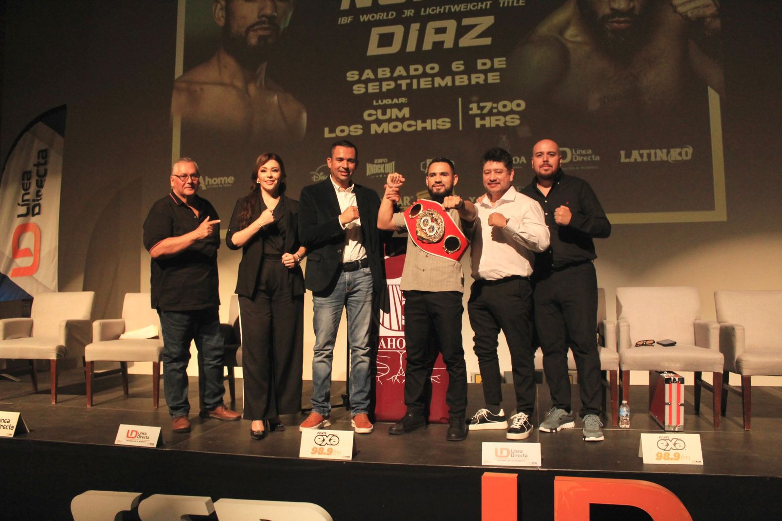 Este jueves fue presentada oficialmente la función de boxeo del próximo sabado 6 de Septiembre en Los Mochis, Sinaloa y donde estará en juego el TÍTULO MUNDIAL SUPERPLUMA FIB, mismo que ostenta el sinaloense Eduardo “SUGAR” Núñez y se medirá en la pelea estelar ante el boricua Cristopher “PITUFO” Díaz.