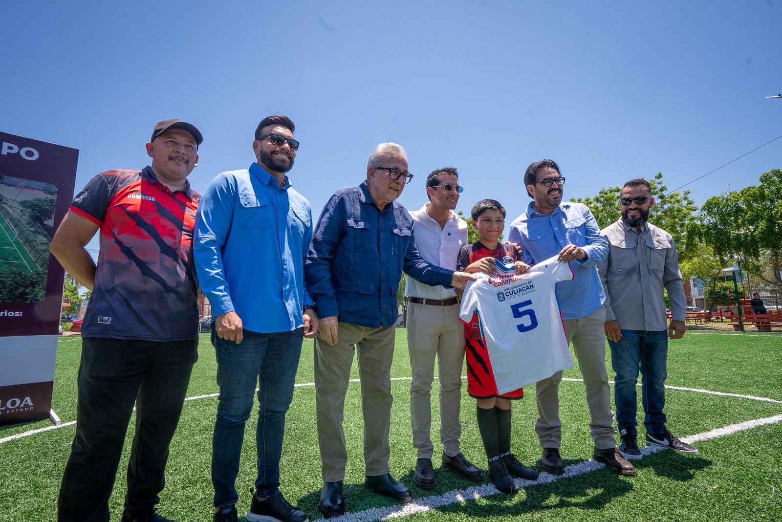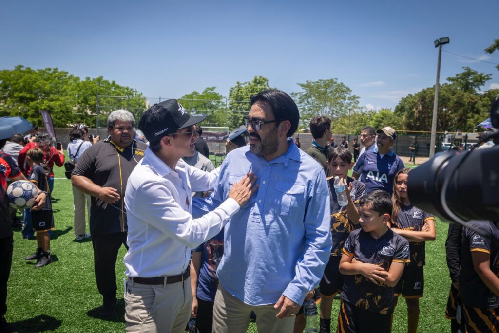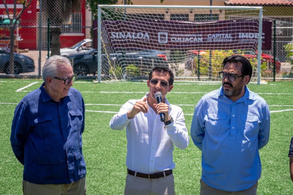 El funcionario federal, acompañado por el gobernador Rubén Rocha Moya y el alcalde Juan de Dios Gámez Mendívil, hicieron entrega de dos canchas de fútbol de pasto sintético en los fraccionamientos Villa del Real y Chulavista.
