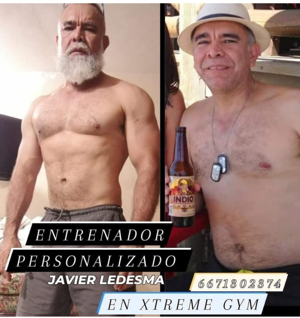 Javier Ledesma Guzmán, nativo de Culiacán, Sinaloa, en las instalaciones de Extreme GYM, donde tiene 10 años como instructor nos compartió como inició su drástico cambio físico: “Hacía ejercicio, sin embargo nada formal, sin disciplina. No me sentía bien ni física, ni mentalmente y buen día me decidí a cambiar mi vida a mejorar. Por ello siempre le estaré agradecido a Juan Burgos, de Stadium Gym, fue con quien inicié, me apoyó y ahora a mis 55 años años me siento muy bien yanto en el aspecto físico como mental”.