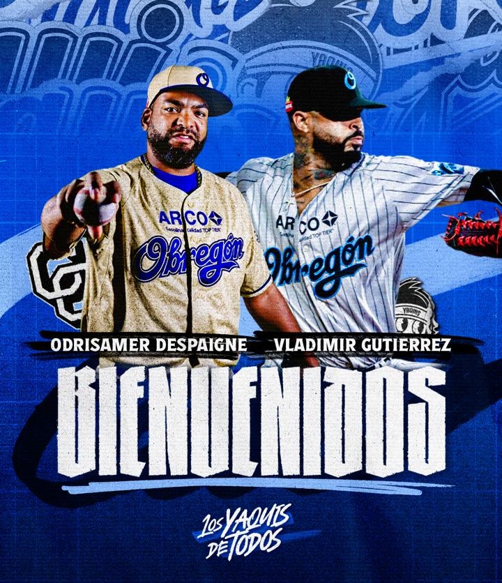 Este lunes el Club Yaquis de Obregón anunció a sus primeros refuerzos extranjeros confirmados para la Temporada 2025-2026 de la Liga Arco Mexicana del Pacífico (LAMP), se trata de los serpentineros cubanos Odrisamer Despaigne y Vladimir Gutiérrez, quienes regresan a formaran parte de la rotación de la Tribu.
